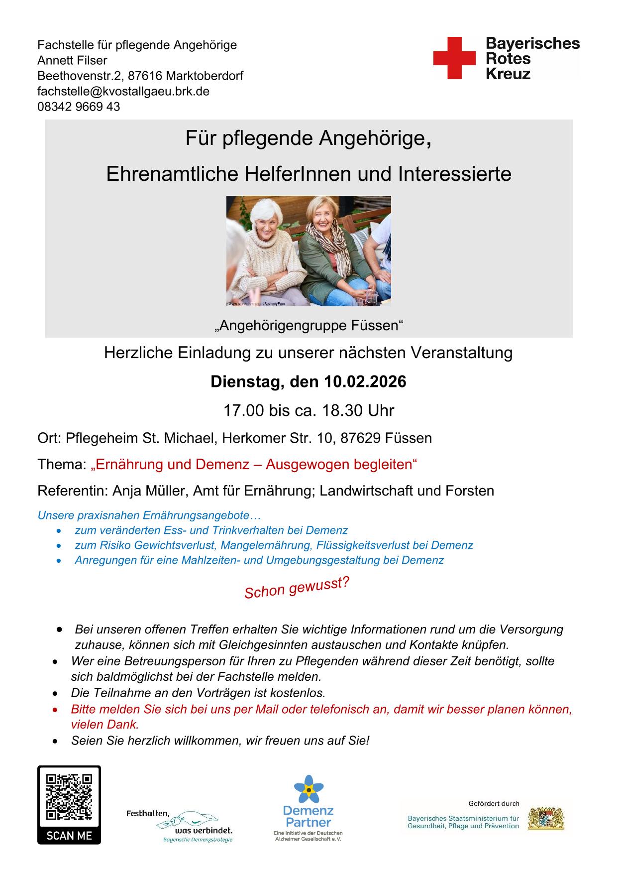 Angehörigentreff Füssen: „Ernährung und Demenz – Ausgewogen begleiten“