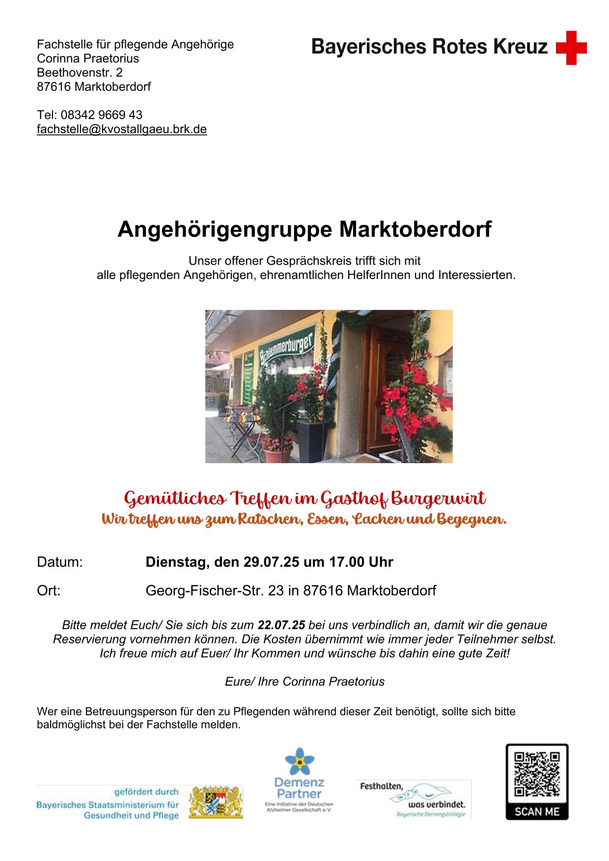 Angehörigentreff: Gemütliches Treffen im Gasthof Burgerwirt