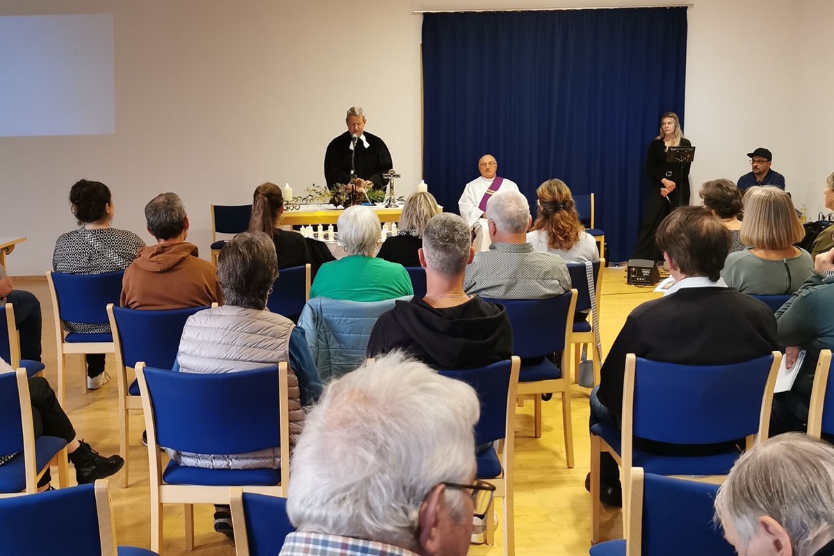 Für die musikalische Gestaltung sorgten ‚Franzi und Andrea‘, die mit ihren einfühlsamen Liedbeiträgen und Instrumentalstücken wesentlich zur besonderen Stimmung des Gottesdienstes beitrugen. Den Raum festlich gestaltet hatte das Team der sozialen Betreuung in Zusammenarbeit mit Pflegedienstleitung Ramona Köhler. Im Anschluss an den Gottesdienst nutzten viele Besucherinnen und Besucher die Gelegenheit zum Gespräch und zum Austausch bei einem kleinen Imbiss. „Die Veranstaltung soll Raum für Trost, Begegnung und stille Erinnerung bieten – ein Moment des Innehaltens und der Dankbarkeit für gemeinsame Lebenswege“, so Andreas Hüller, Leiter der Senioreneinrichtung des BRK Kreisverband Ostallgäu. Das sei ein wichtiges Ritual in der Begegnung mit dem Tod.