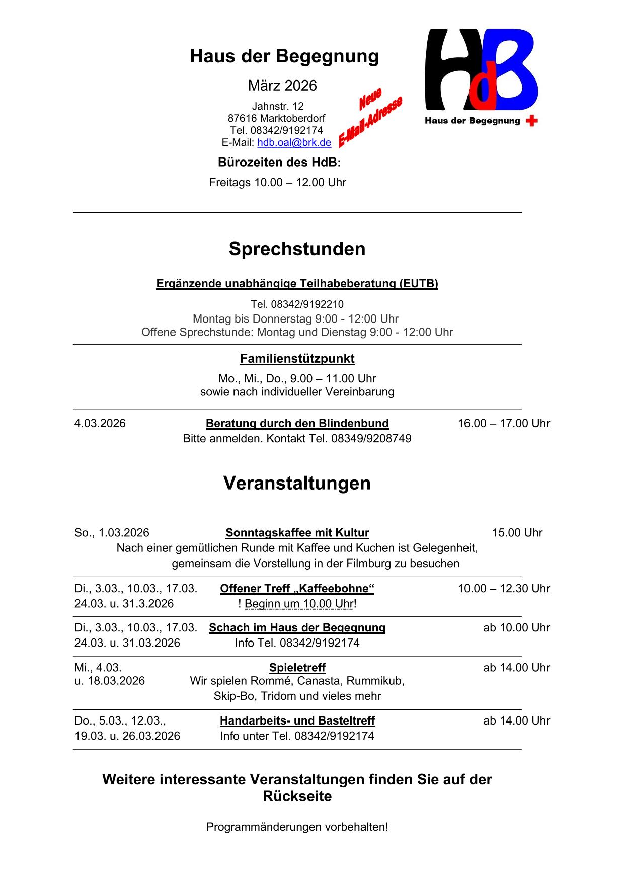 Unser Haus der Begegnung in der Jahnstraße 12 in Marktoberdorf hat die Türen für Sie geöffnet.