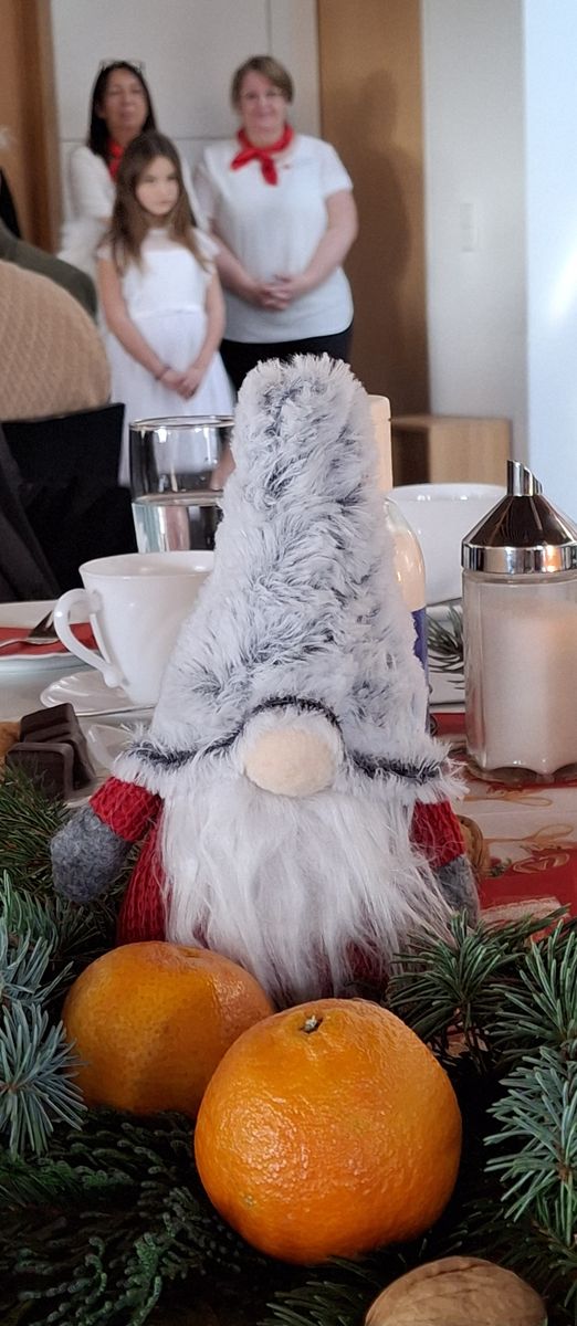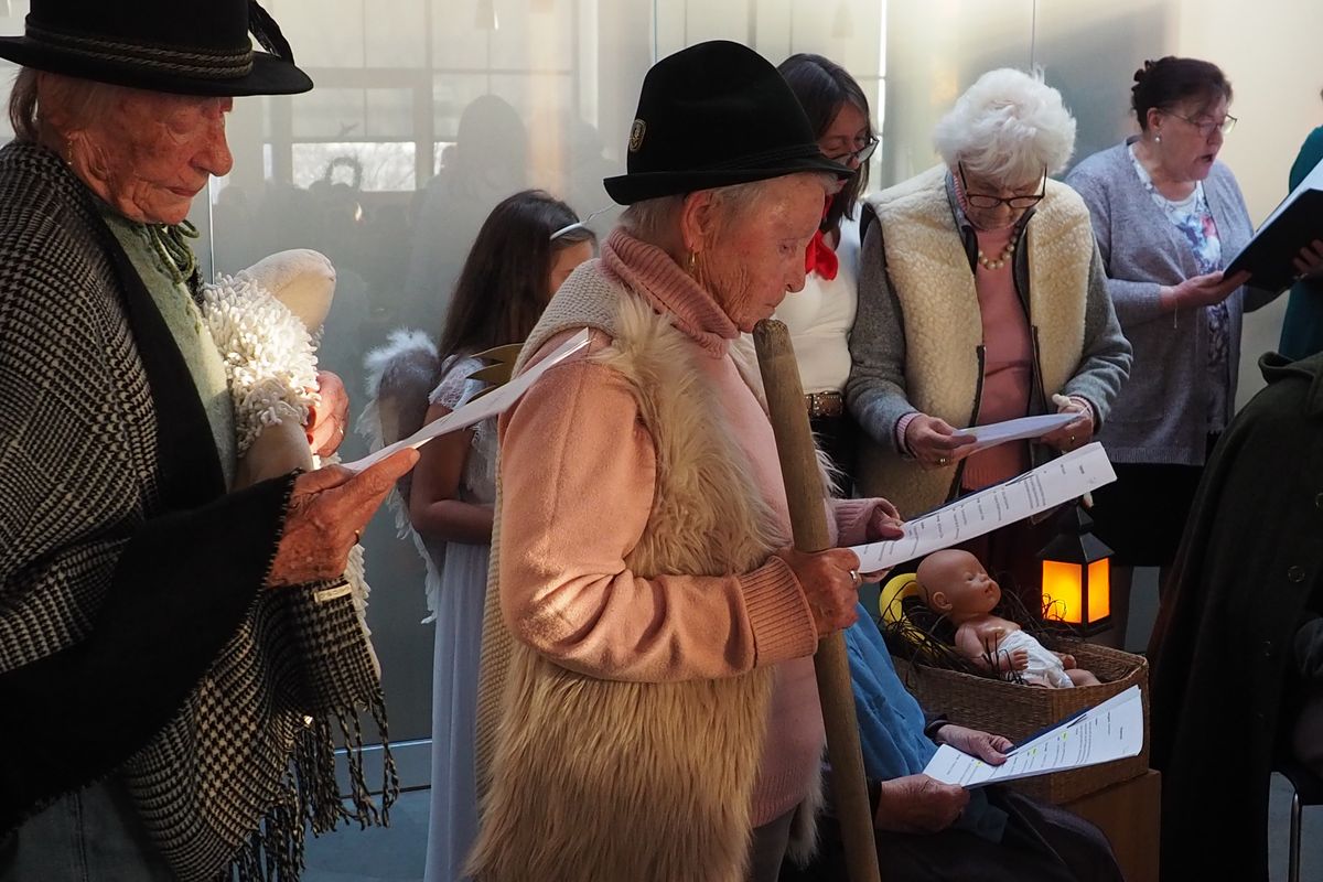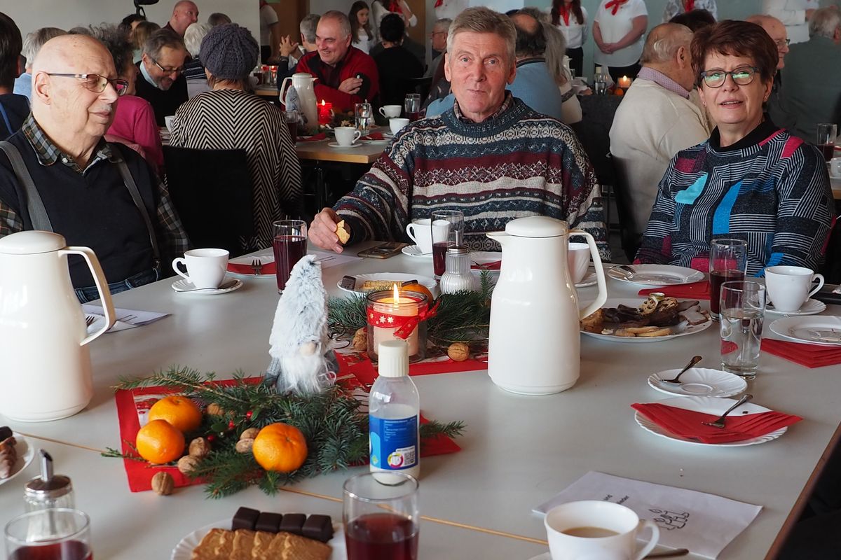 Ein abwechslungsreiches Programm rundete den Nachmittag ab. Der Gemeinschaftschor Dösingen und Beckstetten unter der Leitung von Günther Filser begeisterte mit weihnachtlichen Weisen zum Zuhören und Mitsingen. Beeindruckend war das Krippenspiel, das einige Tagesgäste in den Wochen zuvor unter der Federführung von Mitarbeiterin Renate Wende mit großer Begeisterung einstudiert hatten. Natürlich durfte auch der Besuch des Nikolaus nicht fehlen, der für jeden der anwesenden Tagesgäste eine nette persönliche Anekdote bereithielt.