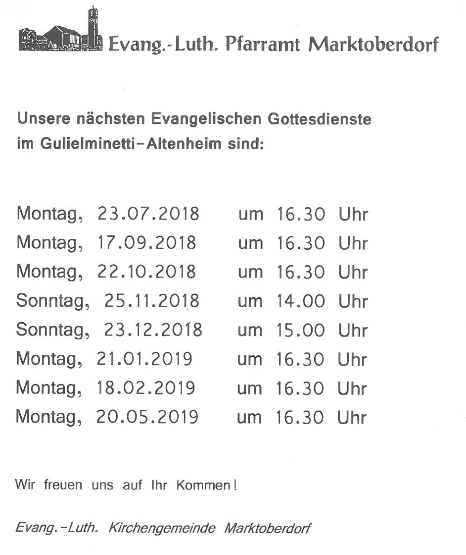 Evangelischer Gottesdienst im Gulielminetti-Haus