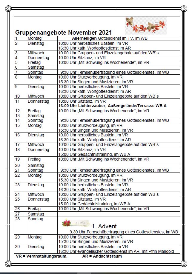 Veranstaltungen November 2021