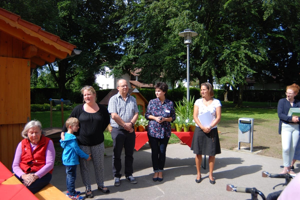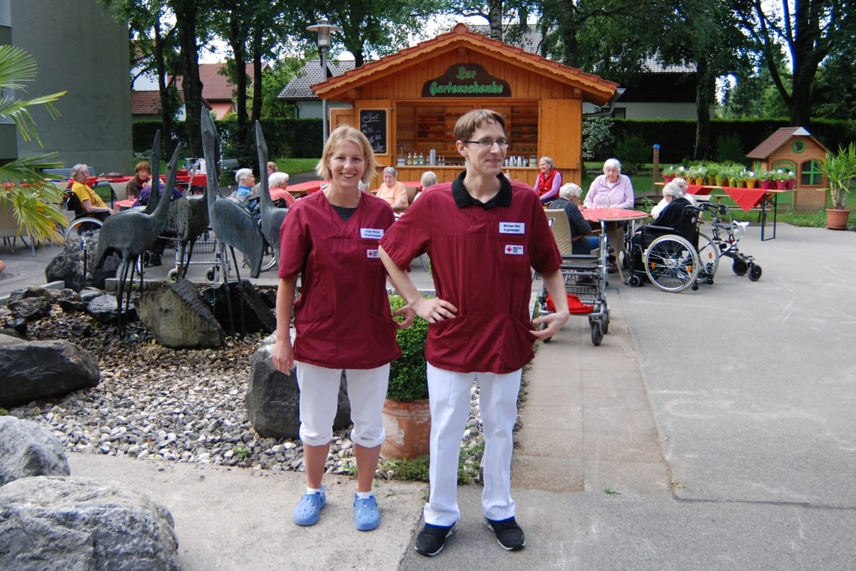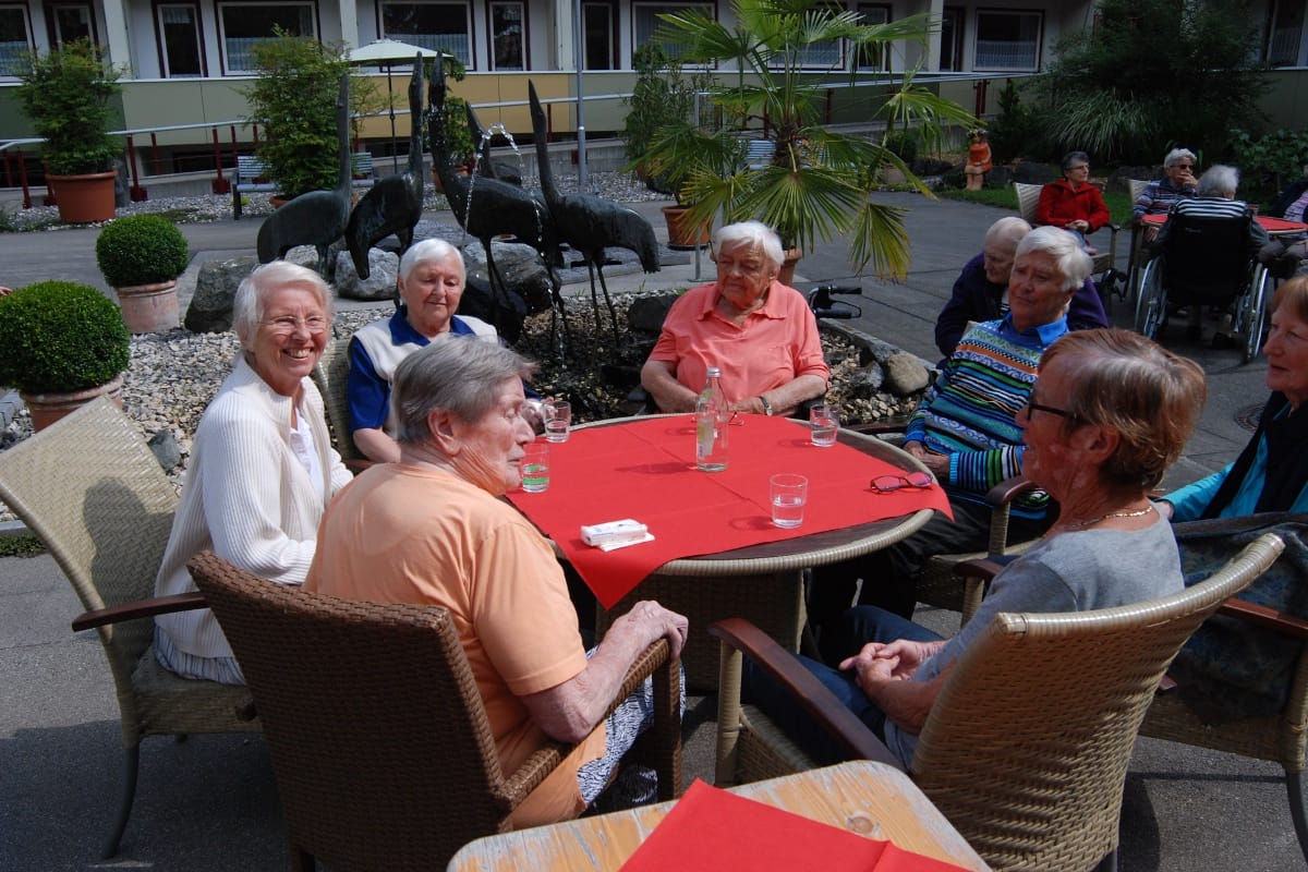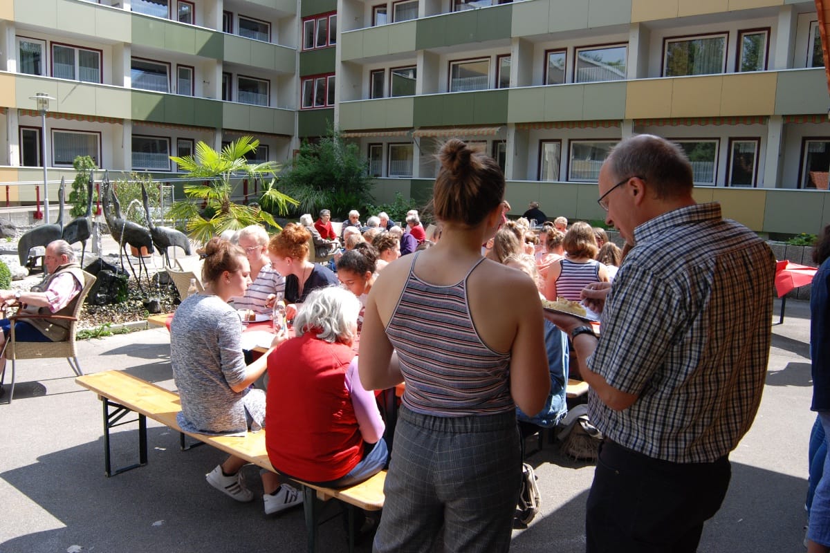 Es klang, als empfingen Sportfans ihre Lieblingsmannschaft. Der Applaus und die Hallo-Rufe der Bewohner des Seniorenwohn- und Pflegeheims Gulielminetti galten 27 Schülerinnen des benachbarten Gymnasiums Marktoberdorf. Das Zusammentreffen im Garten des Hauses war der Abschluss des gemeinsamen Projekts „Lernen durch Engagement“. Seit Februar gestalteten und leiteten drei Zehntklässlerinnen im Wechsel wöchentlich eine Gymnastikstunde im Seniorenheim des Bayerischen Roten Kreuzes.