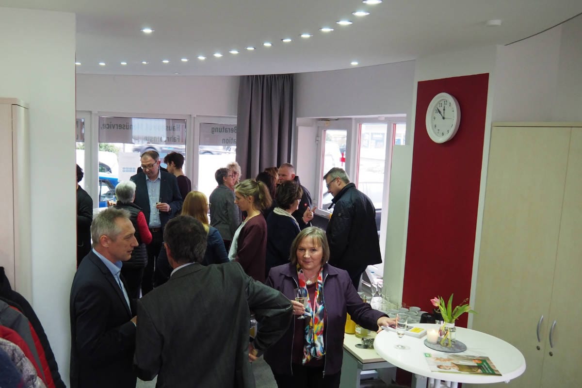 Zusammen mit Vertretern des GSW, der Stadt Kaufbeuren sowie des Klinikums Kaufbeuren-Ostallgäu waren zahlreiche Netzwerkpartner, Freunde und Kollegen gekommen, um die neuen Räumlichkeiten in Augenschein zu nehmen. BRK Ostallgäu-Kreisgeschäftsführer Thomas Hofmann und Dienststellenleiter der Kaufbeurer BRK-Geschäftsstelle Alexander Denzel sowie Vertreter der verschiedenen Dienste und Einrichtungen des Kreisverbands freuten sich über den offenen, hellen und gemütlich wirkenden Laden, in dem ihre Dienste künftig den Neugablonzern präsentiert werden sollen.
