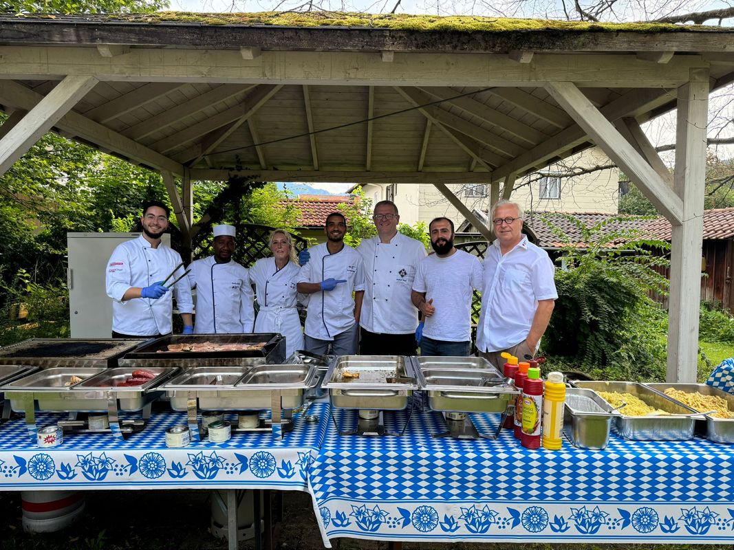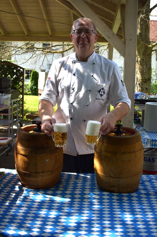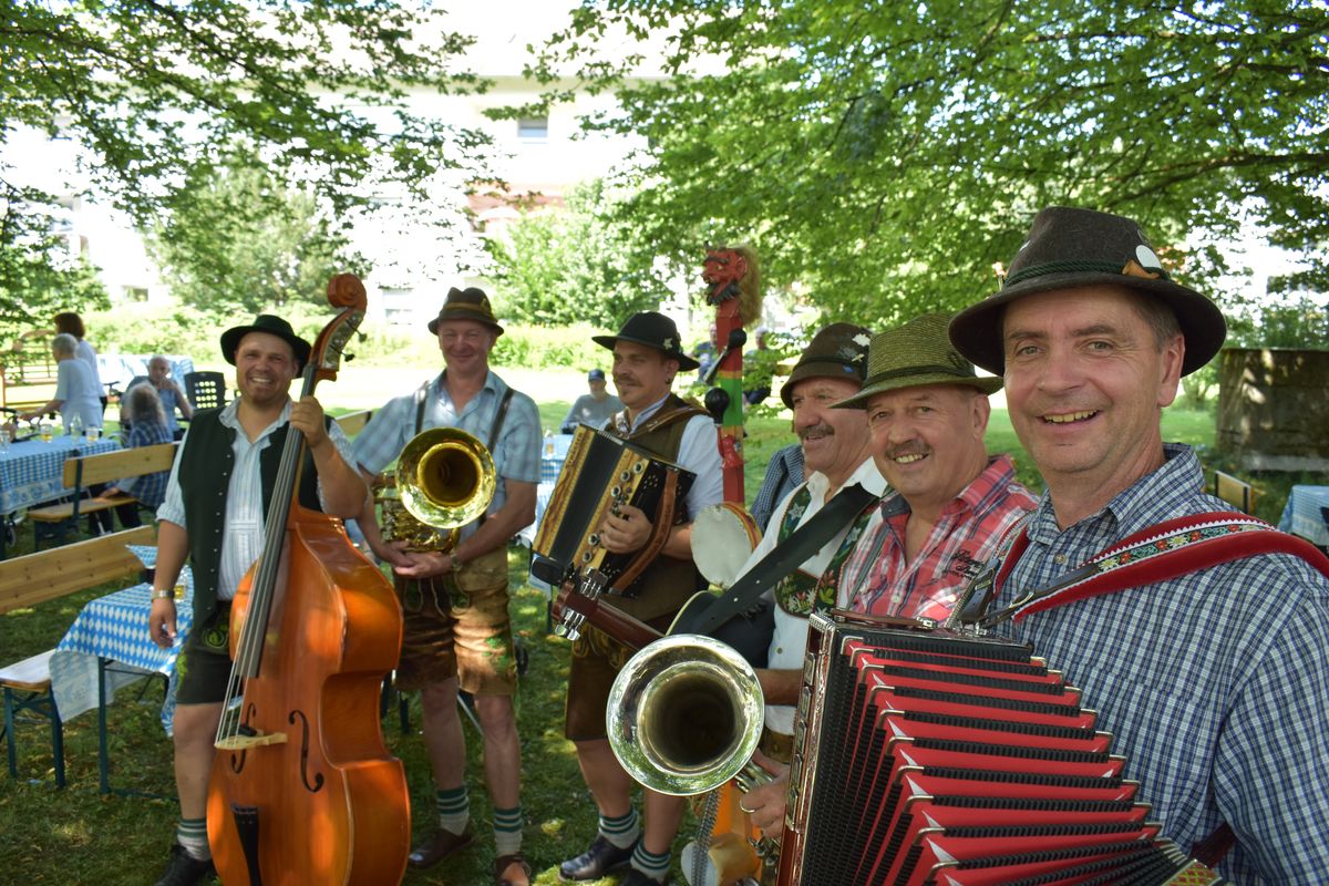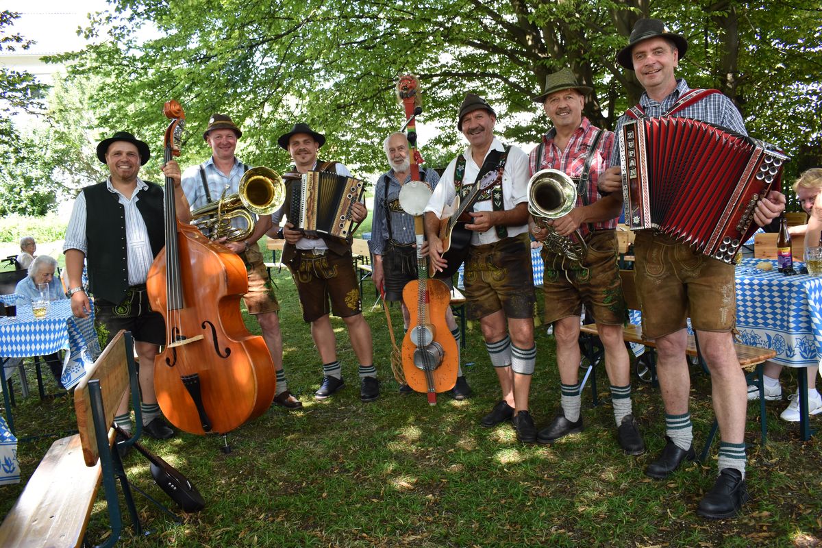 Das Sommerfest fand im Schatten der historischen Bäume im Garten des St. Michael statt. Es traten Klaus Hofer an der Quetsche, Michael Schwärzler am Zupfbass, Dieter Unterreiner an der Gitarre, Simon Schweiger an der Ukulele und Ziach, Werner Diller am Barriton, Seppi Helmer am kleinen Horn und Hans Hartmann aus Füssen an der Teufelsgeige auf. Der geborene Riedener Hartmann ist mit mittlerweile 81 Jahren ein Fels in der Brandung der Kultmusiker. Es gab viel zu Lachen und viel zu Hören - "zualoosa", wie man im Allgäu sagt. „In jedem Fall eine Mordsgaudi,“ fand das vergnügte Publikum, das sogar das Tanzbein schwang. Zur Stärkung bot das Küchenteam von St. Michael ein bayerisches Grillbuffet an. Neben kühlen Getränken sorgte Beppos Eiswagen mit original italienischem Gelato für Erfrischung.