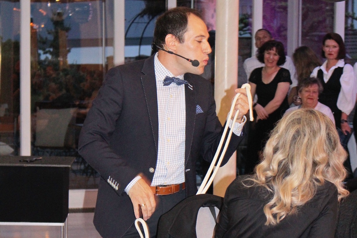 Neben kulinarischen Köstlichkeiten im griechischen Restaurant Taverna Elia konnten sich die haupt- und ehrenamtlichen Mitarbeiterinnen und Mitarbeiter sowie deren Partnerinnen und Partner von ‚Kratzer CMK Zauberkunst‘ aus Germaringen verzaubern lassen.