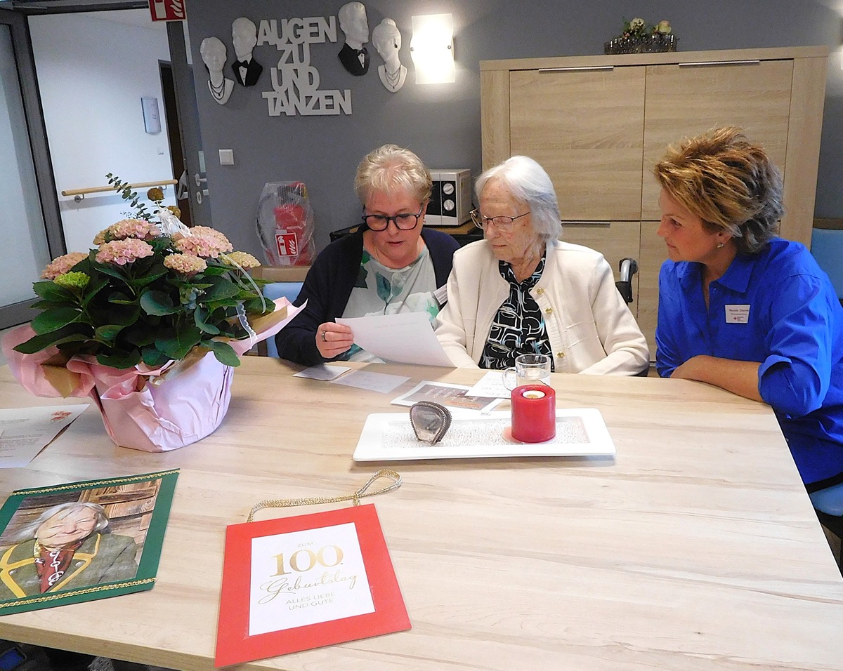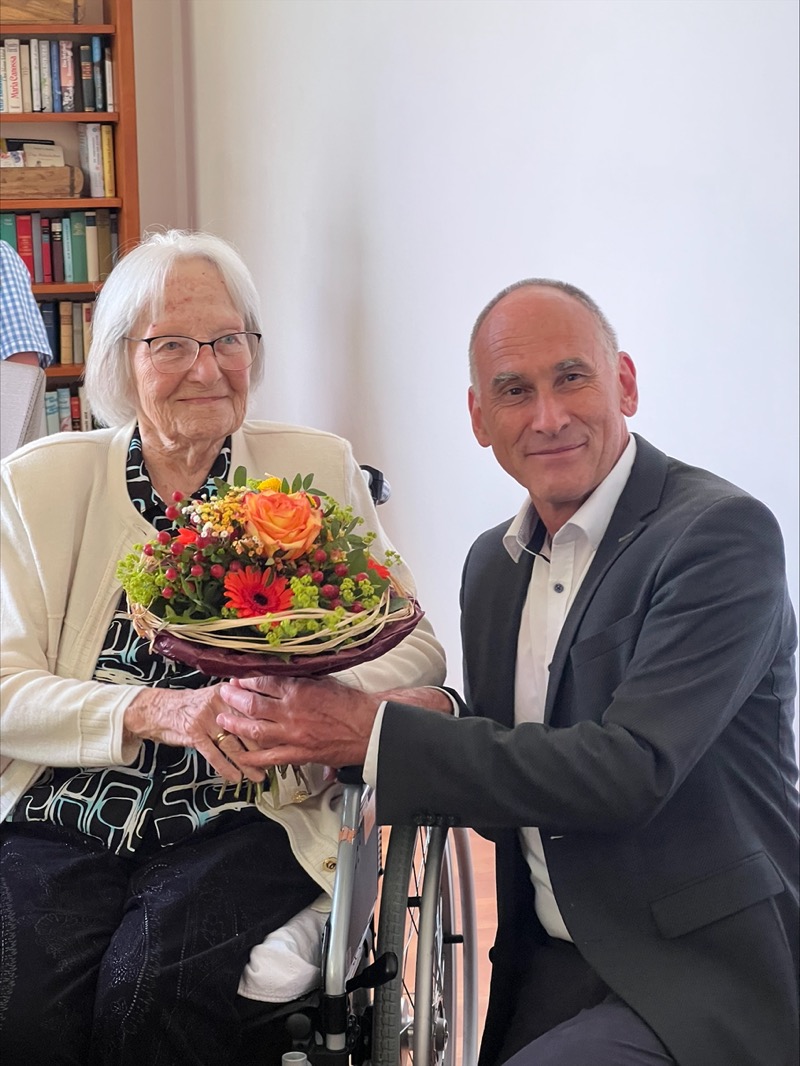 An ihrem Jubiläum wurde sie von ihrer Familie, Mitbewohnern und dem Betreuungsteam gefeiert – begleitet von herzlichen Glückwünschen aus Politik und Gesellschaft. So gratulierten der Bundespräsident Frank-Walter Steinmeier und der bayerische Ministerpräsident Dr. Markus Söder mit Schreiben. Bürgermeister Dr. Wolfgang Hell überbrachte seine Glückwünsche persönlich: „Es ist für mich immer etwas ganz Besonderes, einen Menschen zu erleben, der ein ganzes Jahrhundert miterlebt und mitgestaltet hat.“