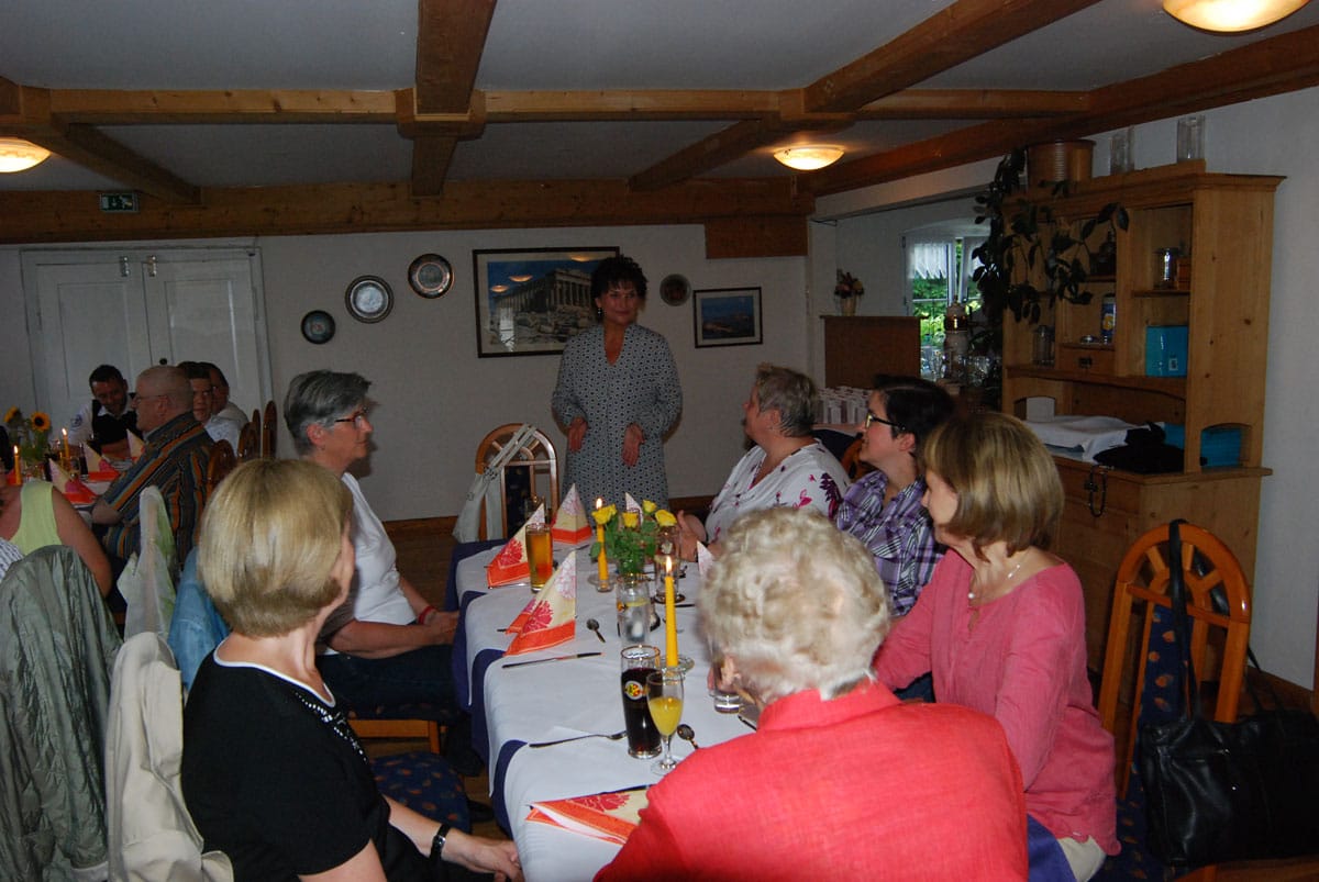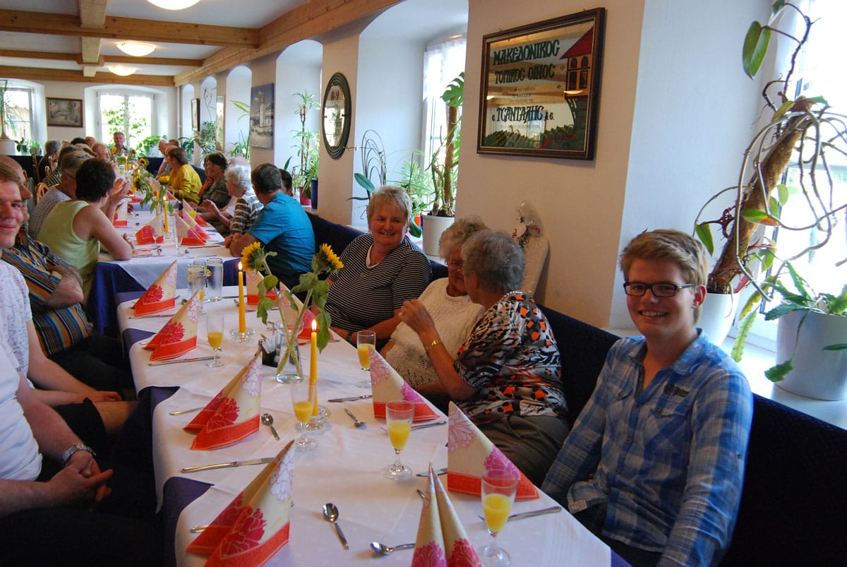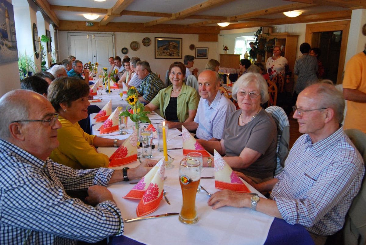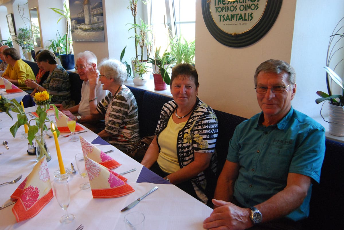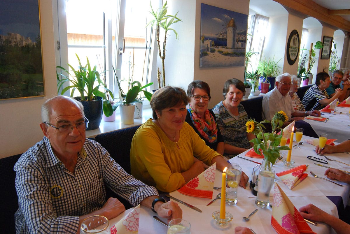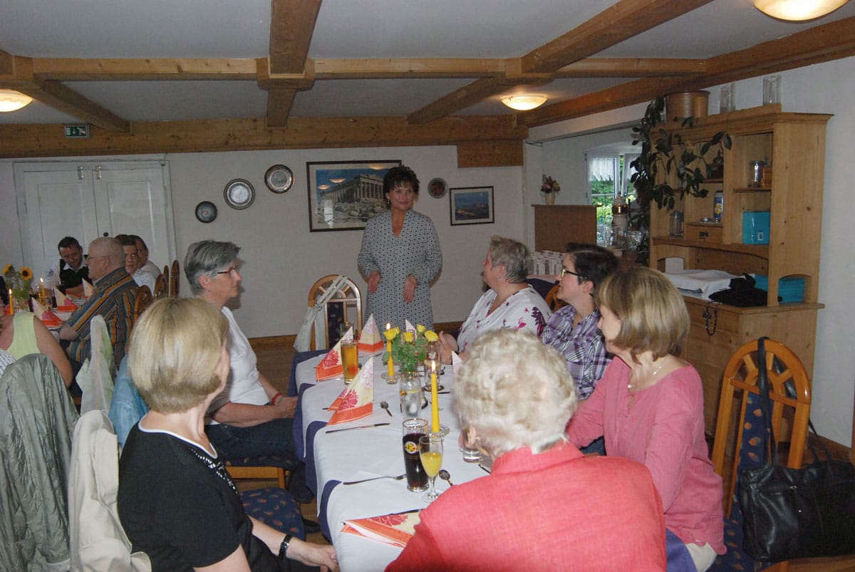 Dieses Miterleben der Freude der Bewohner, sei es beim Radausflug, beim Besuchsdienst oder als Ziehharmonikabegleitung beim Chorsingen ist häufiges Motiv der Ehrenamtlichen. Damit im Einklang steht Renate Dauners Wunsch für die Zukunft: „Bleiben Sie uns treu und empfehlen Sie uns weiter“. Nach ihrer kleinen Rede sorgten griechische Spezialitäten und Horst Eberls spitzzüngige Lieder aus dem prallen Leben für einen genussreichen Abend. Diesen nutzten die Gäste noch rege zum gegenseitigen Kennenlernen und Austausch.