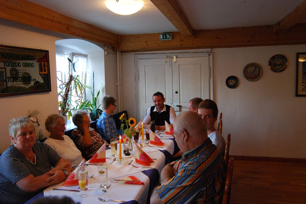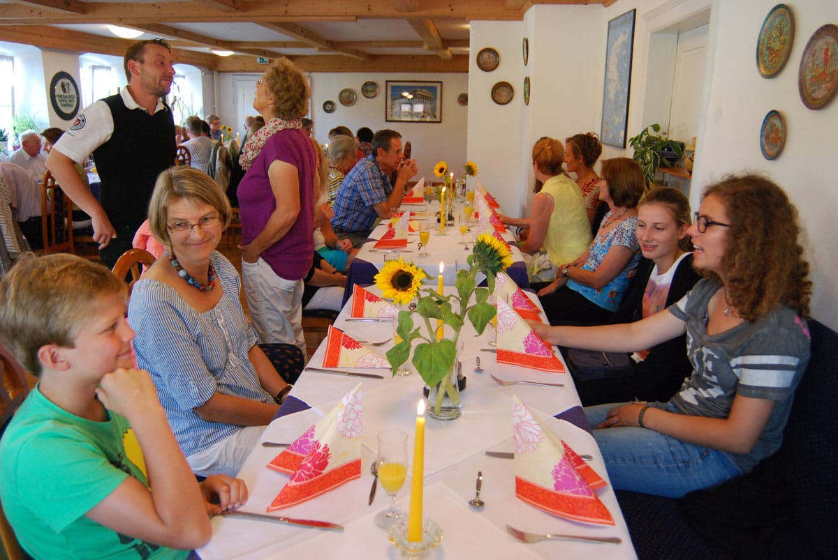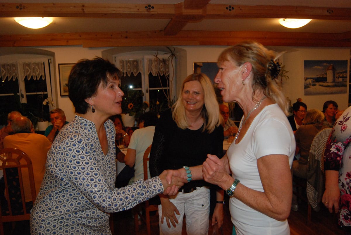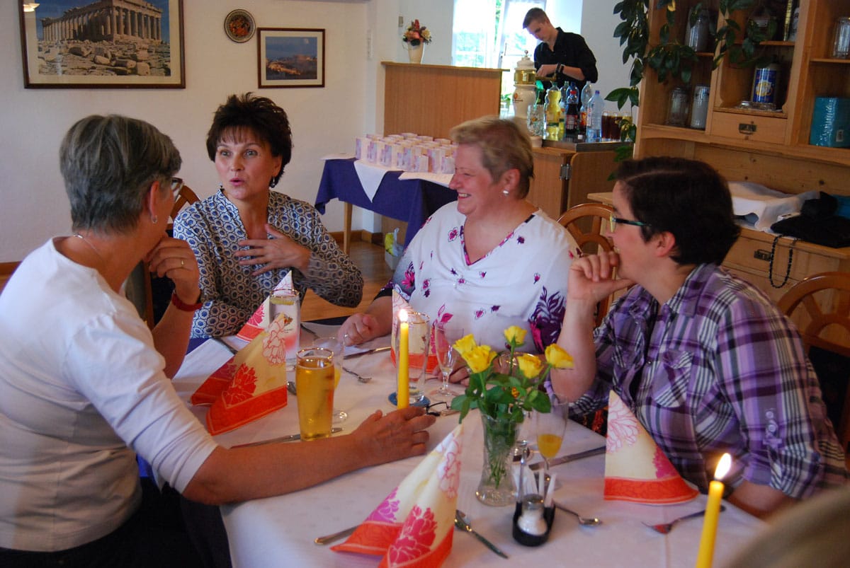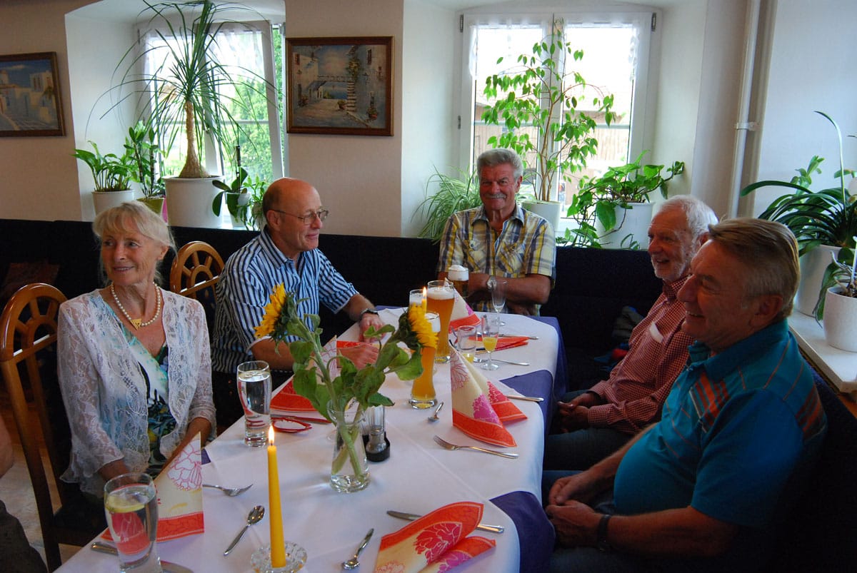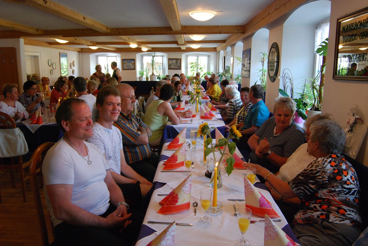 Dieses Miterleben der Freude der Bewohner, sei es beim Radausflug, beim Besuchsdienst oder als Ziehharmonikabegleitung beim Chorsingen ist häufiges Motiv der Ehrenamtlichen. Damit im Einklang steht Renate Dauners Wunsch für die Zukunft: „Bleiben Sie uns treu und empfehlen Sie uns weiter“. Nach ihrer kleinen Rede sorgten griechische Spezialitäten und Horst Eberls spitzzüngige Lieder aus dem prallen Leben für einen genussreichen Abend. Diesen nutzten die Gäste noch rege zum gegenseitigen Kennenlernen und Austausch.