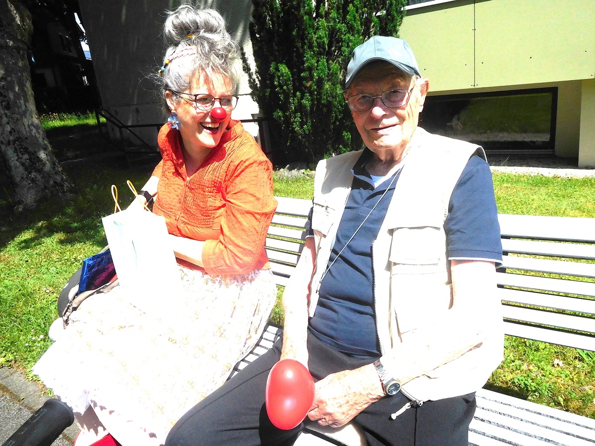 Einer der langjährigen Einsatzorte der KlinikClowns im Bereich Altenpflege ist das Gulielminetti Seniorenwohn- und Pflegeheim in Marktoberdorf. Hier freuen sich die Bewohnerinnen und Bewohner seit 20 Jahren über den regelmäßigen Besuch „ihrer“ Clowns. Einmal im Monat sorgen die KlinikClowns hier für fröhliche Stunden, steigern Wohlbefinden und Lebensqualität der Seniorinnen und Senioren und wecken neue Lebensfreude. Sie haben Musik im Gepäck, aber auch großes Einfühlungsvermögen und die Fähigkeit, einfach mal zuzuhören. Langjährige Erfahrung und Fortbildungen befähigen sie zudem in besonderem Maße, auf Demenzkranke einzugehen, so dass sie spielerisch Erinnerungen und oft vorher ganz unerwartete Reaktionsfähigkeiten aktivieren.