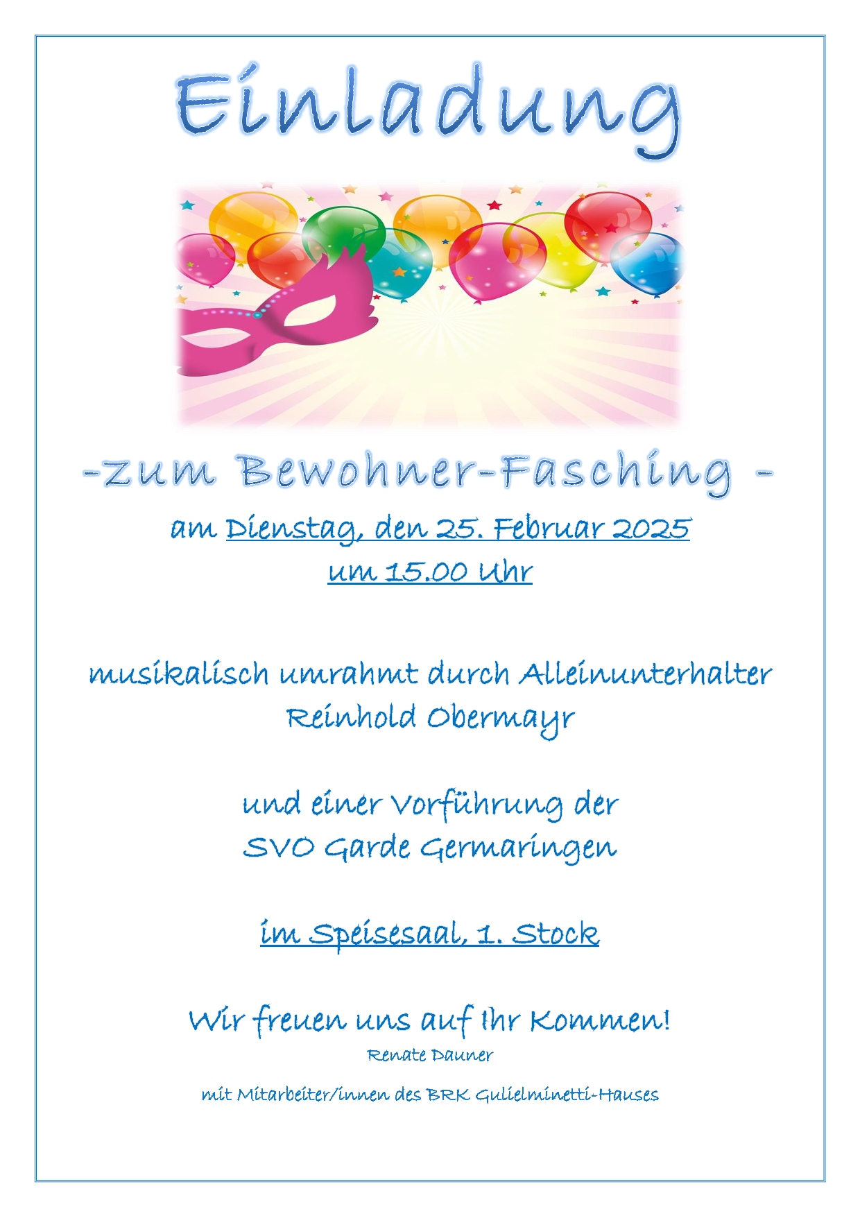 Gulielminettti-Haus: Einladung zum Bewohnerfasching