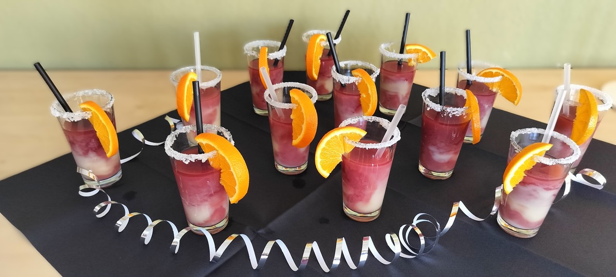 Farbenfrohe Saftcocktails, Snacks und die passende Dekoration sorgten für den dazu passenden Rahmen.