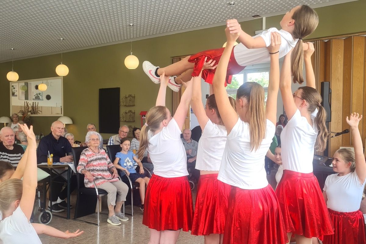 Ein besonderer Höhepunkt des Nachmittags war der Auftritt der jungen Garde des SVO Germaringen unter der Leitung von Anna-Lena Gröger. Sie arbeitet als Ergotherapeutin in der Rotkreuz-Einrichtung. Die Mädchen begeisterten die Bewohnerinnen und Bewohner mit ihrer tänzerischen Showeinlage. Dafür bekamen sie viel Applaus. „Es war ein rundum gelungener Nachmittag, der unseren Bewohnern noch lange in schöner Erinnerung bleiben wird“, fasste Claudia Schien vom Gulielminetti-Haus den Tag zusammen.