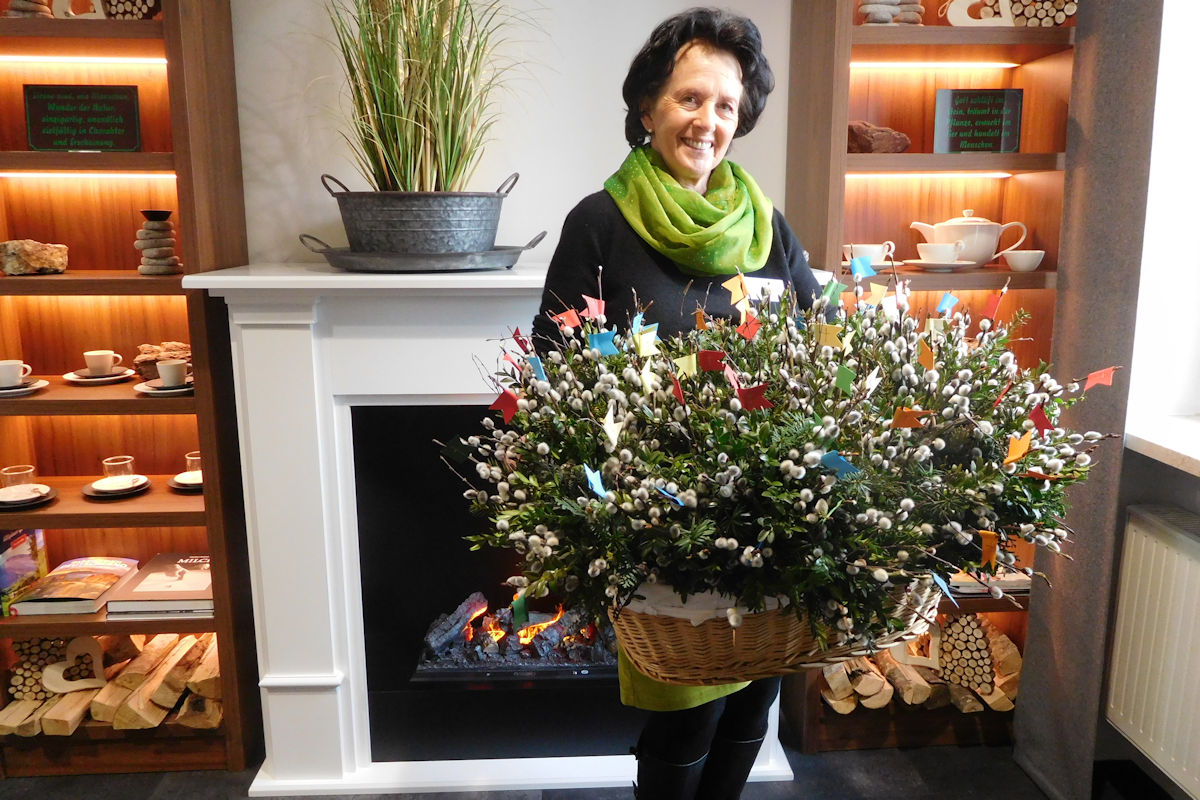 Unsere ehrenamtliche Mitarbeiterin Frau Pohlmann (im Bild) vom seelsorgerischen Besuchsdienst verteilt die Palmboschen gemeinsam mit Frau Schien/Ltg. soz. Betreuung an die Bewohner. Frau Meirose und ihren beiden Kinder Matteo und Emilia haben auch dieses Jahr wieder ehrenamtliche wunderbare Arbeit geleistet um diese schöne Tradition weiterleben zu lassen. Im Hause Meirose wurde dieser Brauch an jede Generation weitergegeben. mehr...