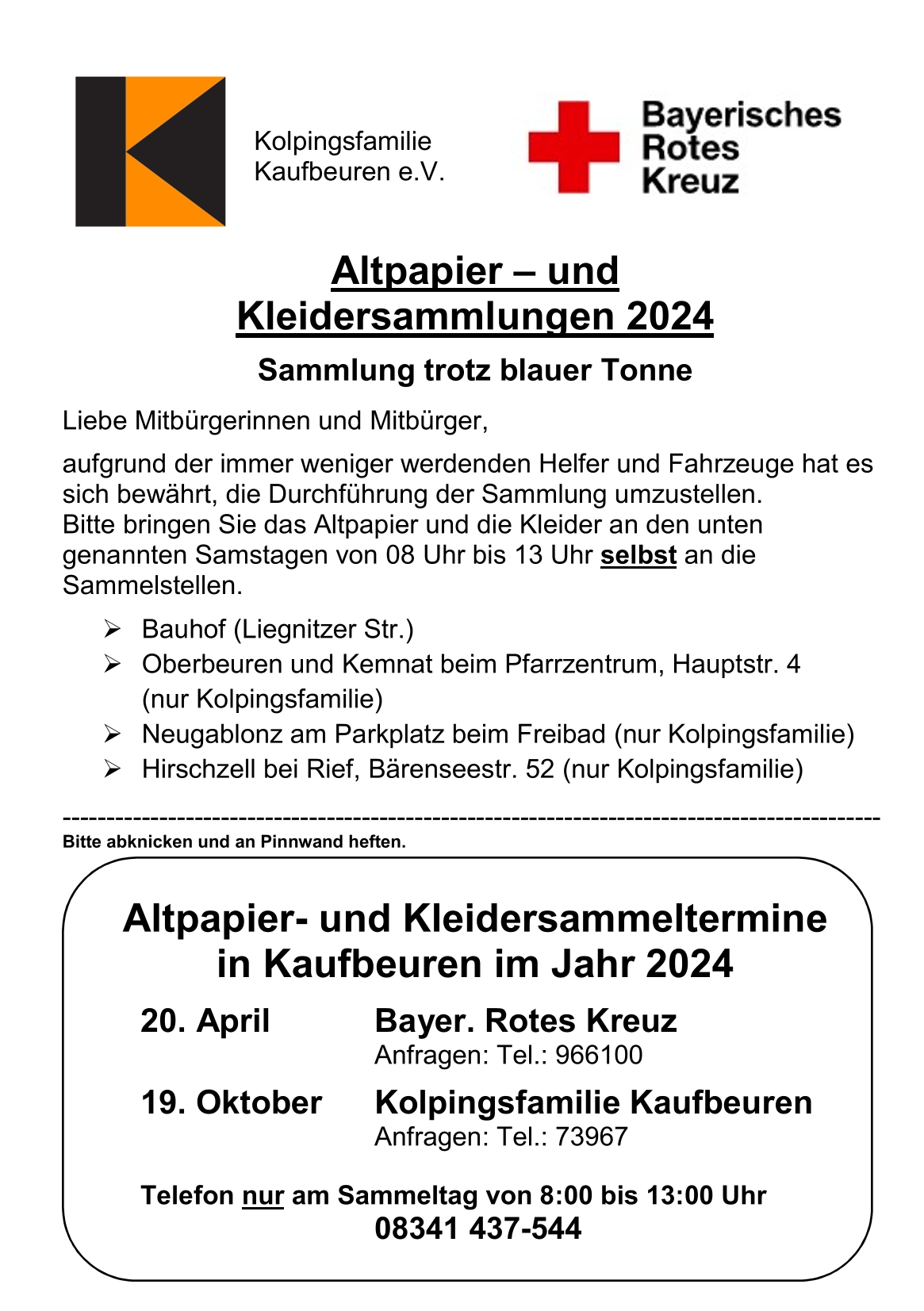 Sammeltermin 19.Oktober 2024 Kolpingsfamilie Kaufbeuren