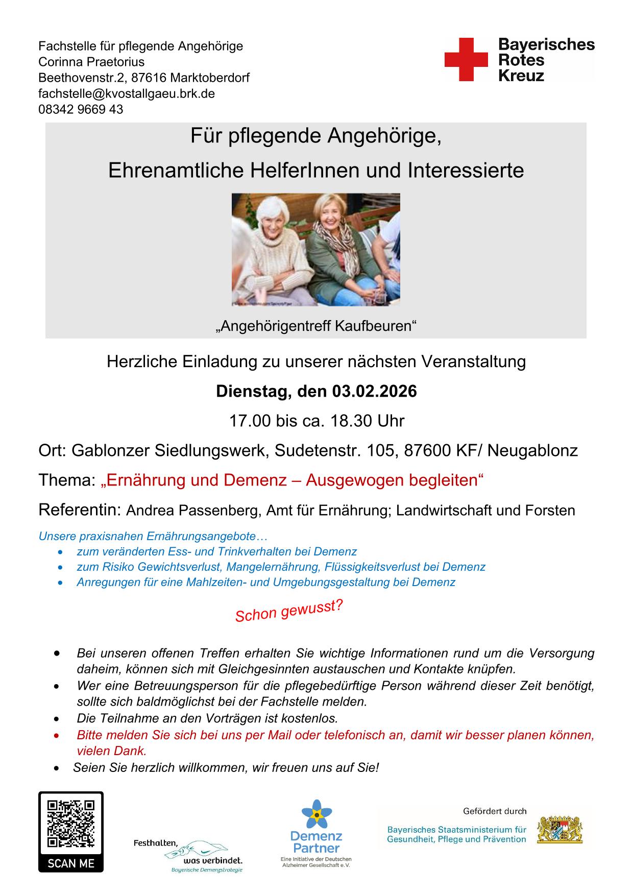 Angehörigentreff Füssen: „Ernährung und Demenz – Ausgewogen begleiten“