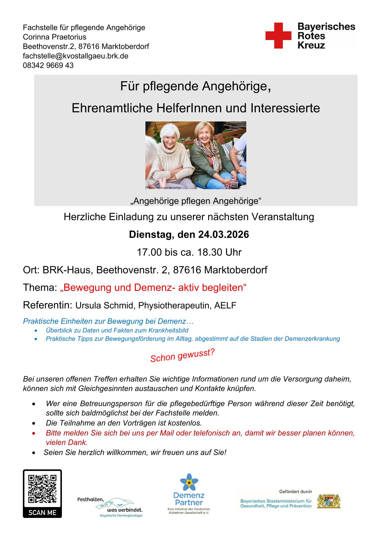 Angehörigentreff: „Bewegung und Demenz- aktiv begleiten“