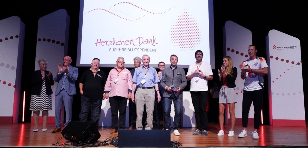 Empfangen wurden die vielfachen Lebensretterinnen und Lebensretter von BR-Moderator Michael Sporer, der durch den Abend führte und mit Gela Allmann sowie Handball-Legende Dominik Klein zwei namhafte Blutspende-Botschafter auf der Bühne begrüßte.