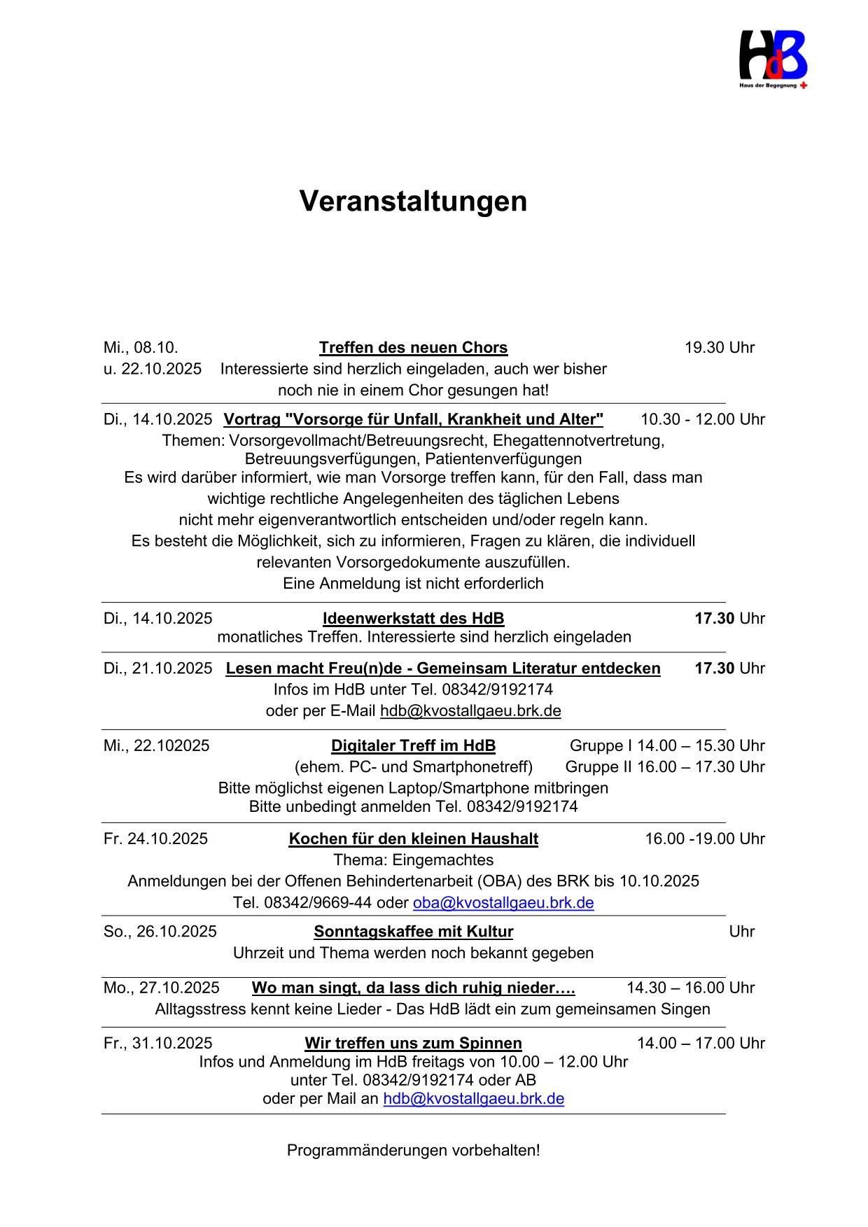 Unser Haus der Begegnung in der Jahnstraße 12 in Marktoberdorf hat die Türen für Sie geöffnet.