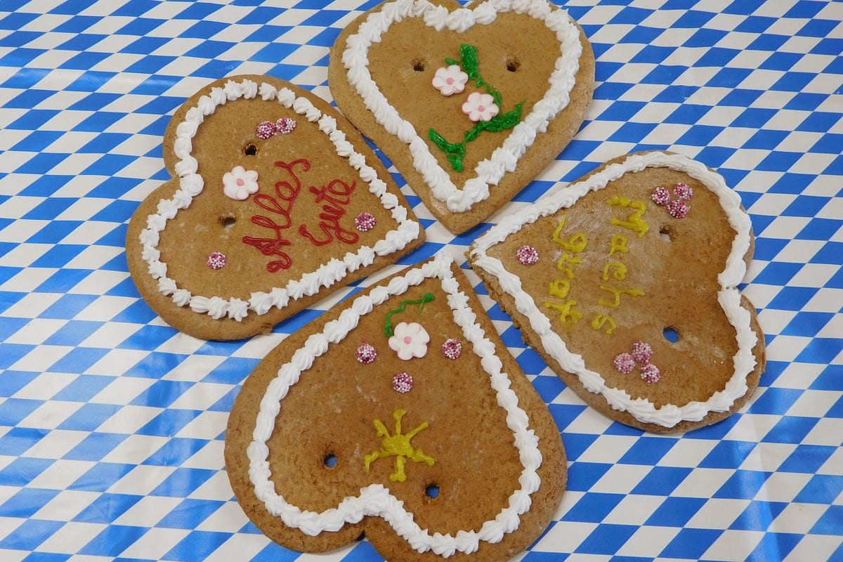 Mit Freude und Eifer fertigten Bewohnerinnen und Bewohner des Gulielminetti Seniorenwohn- und Pflegeheims - passend zur Wies'n-Zeit Lebkuchenherzen an. Die Betreuungsassistentin Frau Marlene Rauch und die ehrenamtliche Mitarbeiterin Frau Hildegard Rabus unterstützten tatkräftig die Bewohner. Alle waren mit viel Eifer dabei und das Ergebnis kann sich sehen lassen: Stolz präsentieren einige fleißige Bäckerinnen ihre gelungenen Backergebnisse. Jedes Herz mit einer persönlich gestalteten Zuckerguss-Aufschrift!