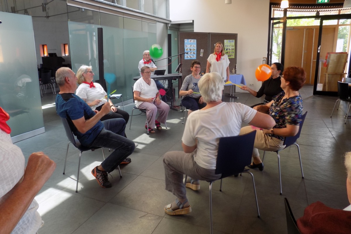 Ob beim Luftballonjagen mit Fliegenklatschen oder bei anderen Spielen – der Spaß kam an diesem Nachmittag nicht zu kurz. Für das leibliche Wohl war mit Kaffee und selbstgebackenem Kuchen gesorgt. Reinhold Geiger lieferte die passende musikalische Begleitung. Sein Programm sorgte für fröhliche Stimmung und viele mitwippende Füße.