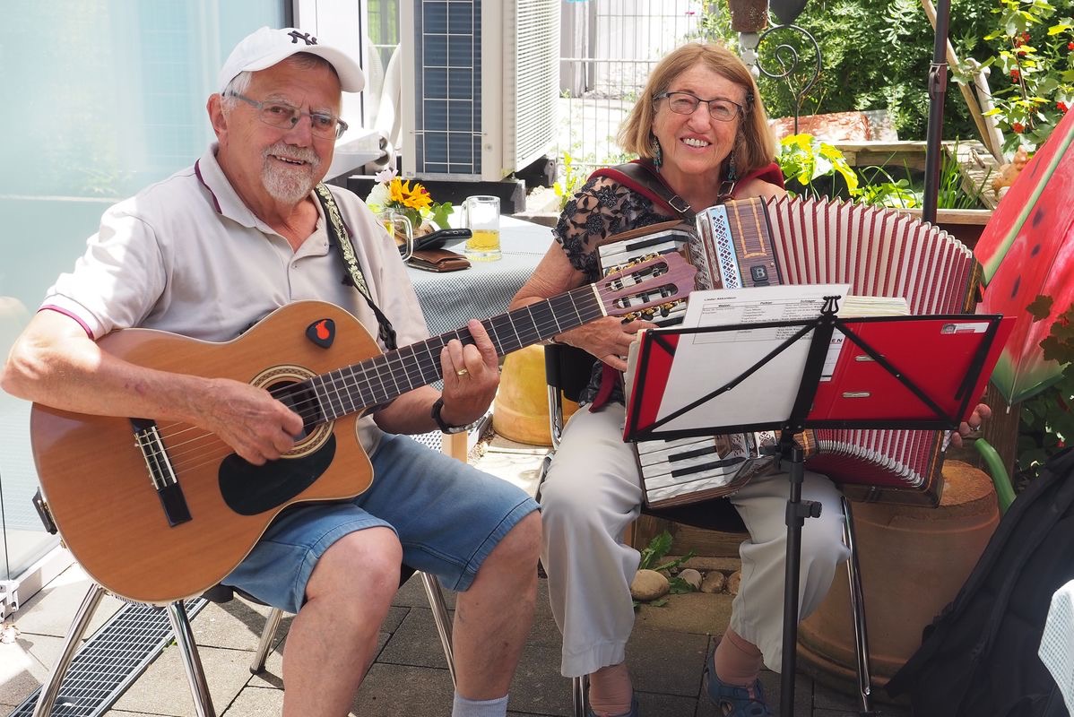 Sie wünschte allen Gästen ein geselliges Beisammensein und dankte den Angehörigen für die selbstgebackenen Kuchen an diesem Nachmittag. „Ein Zeichen der guten Zusammenarbeit.“ Nach Kaffee und Gebäck hatte das Team noch ein kleines Unterhaltungsspiel für die Anwesenden vorbereitet. Etwas abgewandelt bereitete das altbekannte Spiel ‚Ich packe meinen Koffer‘ den Gästen viel Vergnügen. Irene Schreyer am Akkordeon und Hans Schreyer an der Gitarre sorgten für die passende musikalisch Umrahmung des besonderen Nachmittags zu Ehren der Ältesten.