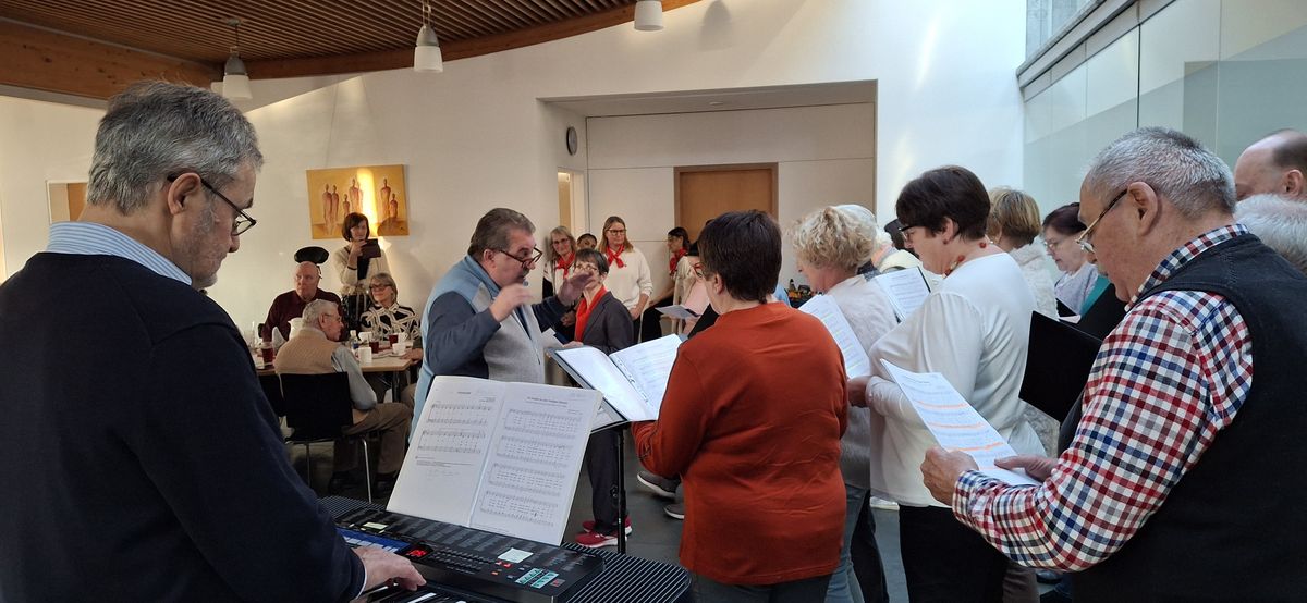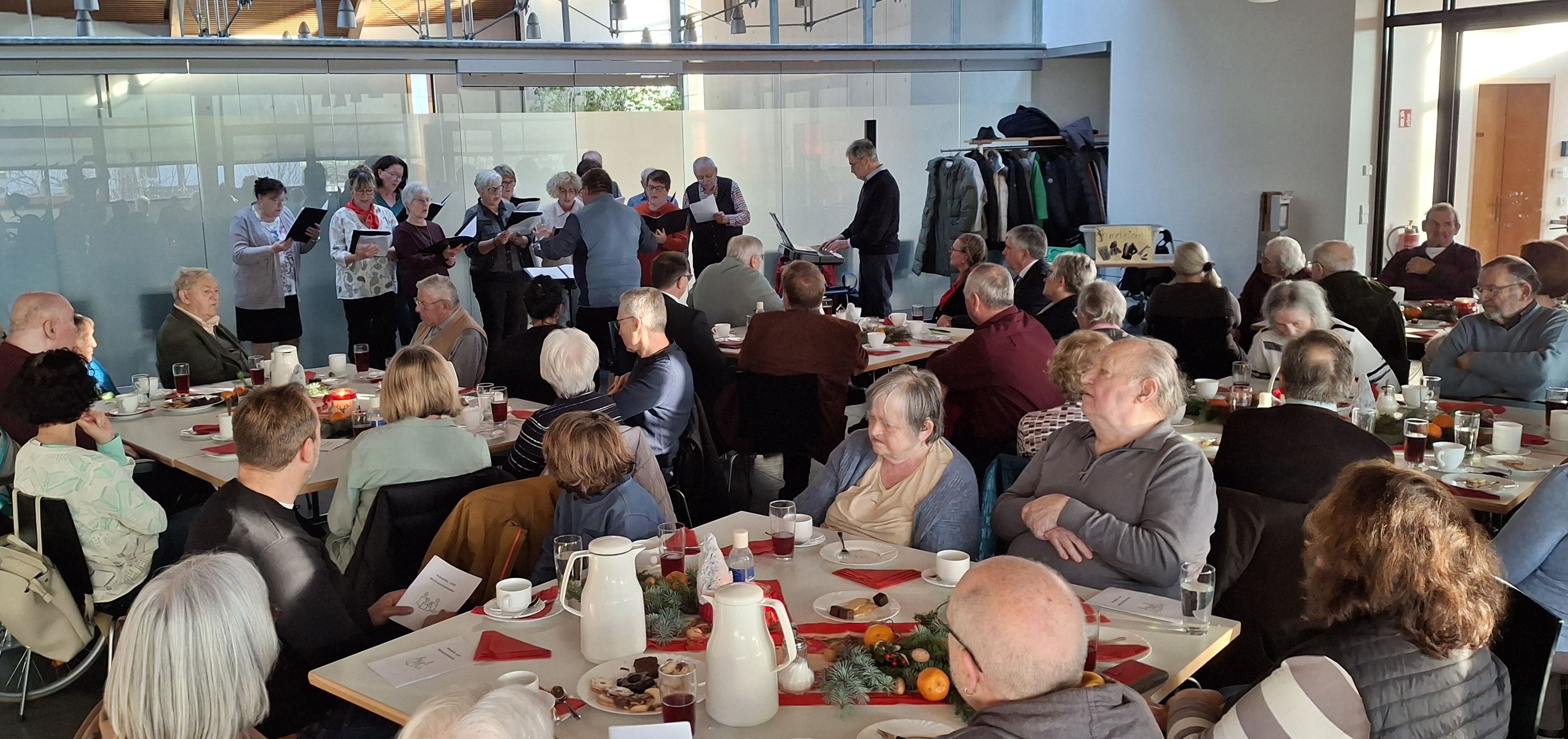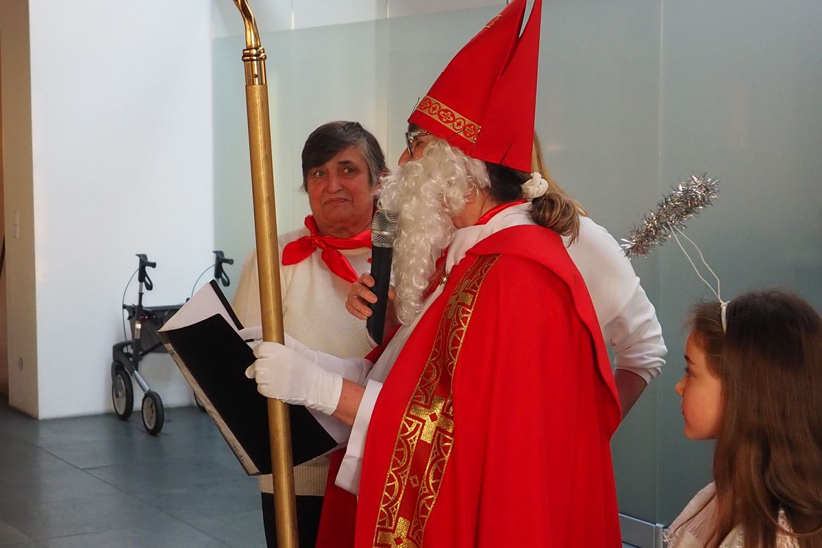 Ein abwechslungsreiches Programm rundete den Nachmittag ab. Der Gemeinschaftschor Dösingen und Beckstetten unter der Leitung von Günther Filser begeisterte mit weihnachtlichen Weisen zum Zuhören und Mitsingen. Beeindruckend war das Krippenspiel, das einige Tagesgäste in den Wochen zuvor unter der Federführung von Mitarbeiterin Renate Wende mit großer Begeisterung einstudiert hatten. Natürlich durfte auch der Besuch des Nikolaus nicht fehlen, der für jeden der anwesenden Tagesgäste eine nette persönliche Anekdote bereithielt.