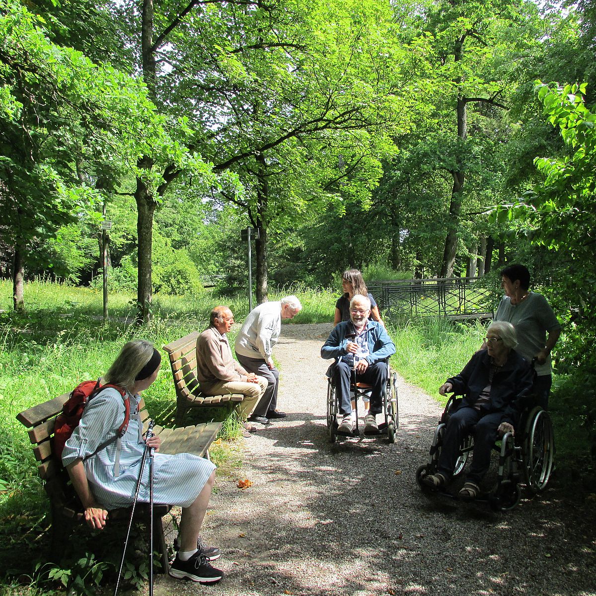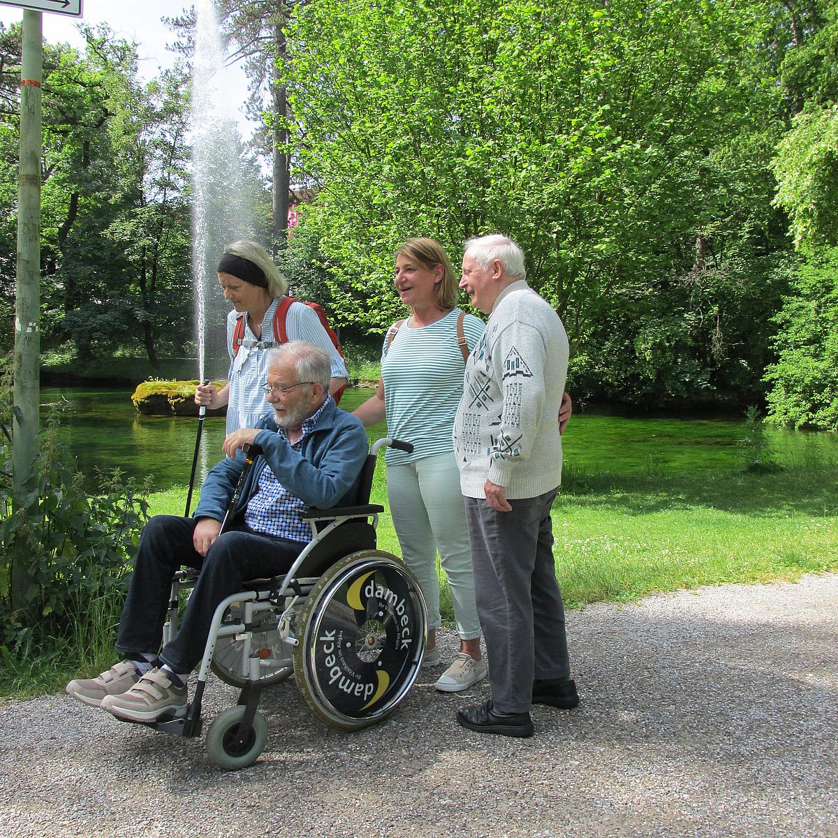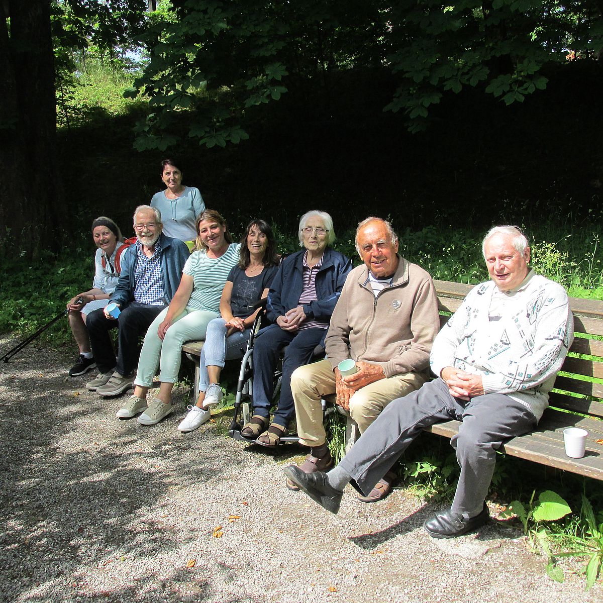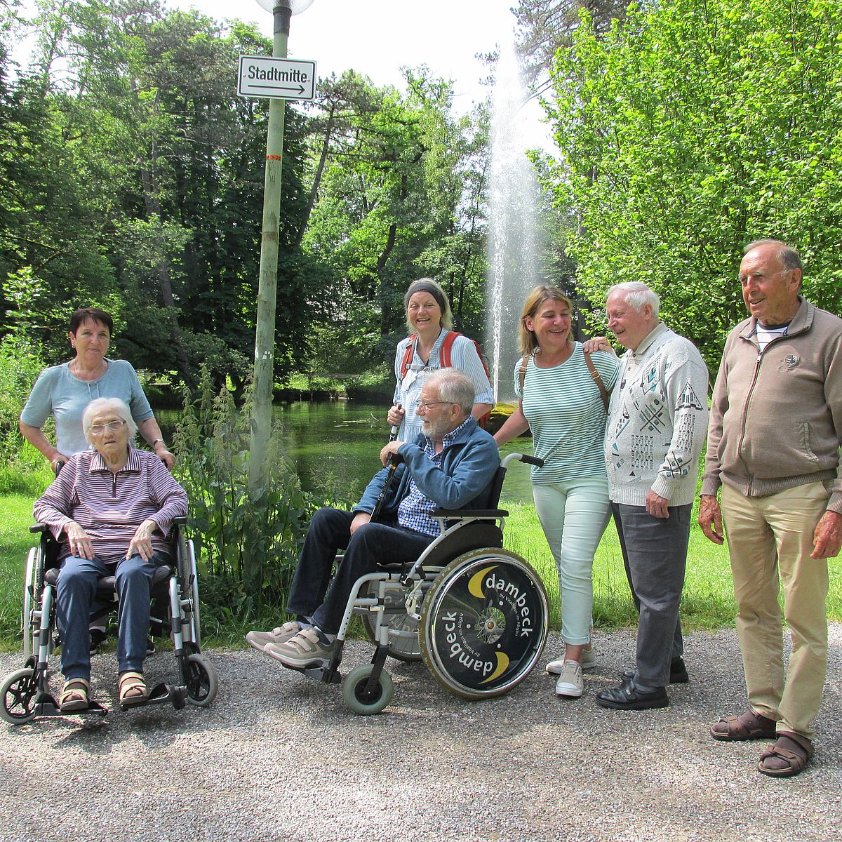Die Gäste der Tagespflege Neugablonz verbrachten eine vergnügliche Zeit auf den schattigen Spazierwegen entlang der Wasserläufe und Weiher im Jordanpark Kaufbeuren.