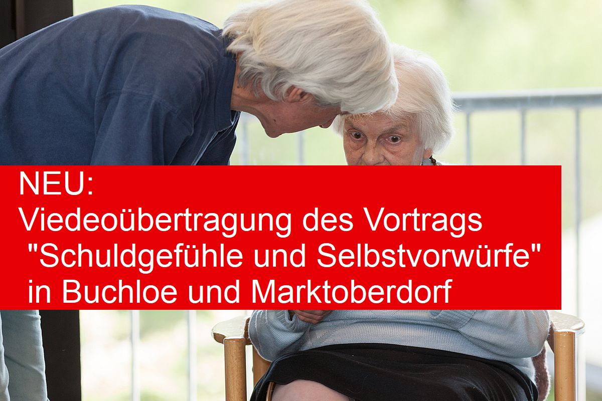 Die Fachstelle für pflegende Angehörige des BRK Kreisverbands Ostallgäu bietet am Dienstag, 27. September, einen Vortrag an zum Thema „Schuldgefühle und Selbstvorwürfe - Hätte ich anders handeln können?“ Aufgrund der hohen Nachfrage können Interessierte, die keinen Online-Zugang haben, den Vortrag nun auch vor Ort in Buchloe und in Marktoberdorf mittels Videoübertragung verfolgen.