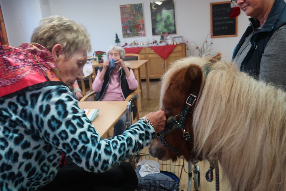 Ein ganz besonderer Gast sorgte im Seniorenheim St. Martin für große Freude: Ein Pony besuchte die Einrichtung. Das dafür geschulte Tier besuchte alle Bewohnerinnen und Bewohner, die es wünschten, direkt in ihren Zimmern und auf den Wohnbereichen. Mit Ruhe und Geduld ließ es sich streicheln und genoss die Aufmerksamkeit. Besonders bei den Bewohnerinnen und Bewohnern, die früher selbst mit Pferden Umgang hatten oder mit Tieren aufgewachsen waren, regten sich die Erinnerungen. Sie erzählten von Erlebnissen aus ihrer Jugend, von der Arbeit auf dem Bauernhof oder von eigenen Pferden. „Die tiergestützte Begegnung fördert Gespräche und das Wohlbefinden der Seniorinnen und Senioren“, freute sich Einrichtungsleitung Andreas Vogel.