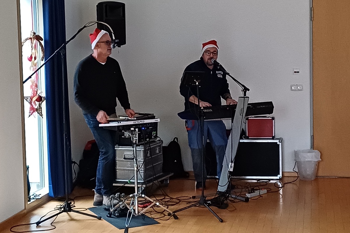 Am Donnerstag vor Weihnachten fand die Weihnachtsfeier für die Bewohnerinnen und Bewohner im Veranstaltungsraum des Seniorenzentrums Clemens-Kessler-Haus statt. Die musikalische Untermalung übernahmen -gewohnt professionell die Verantwortlichen für die Haustechnik, Andrea Saitta und Arno Jaumann. Gemeinsam wurden altbekannte Weihnachtslieder gesungen, aber auch zu modernen Christmas-Songs getanzt. Geschichten zur Adventszeit über „Lametta“ und vom „Christbaumständer“ trug Frau Ramona Allgeier, Betreuungsassistentin, vor.