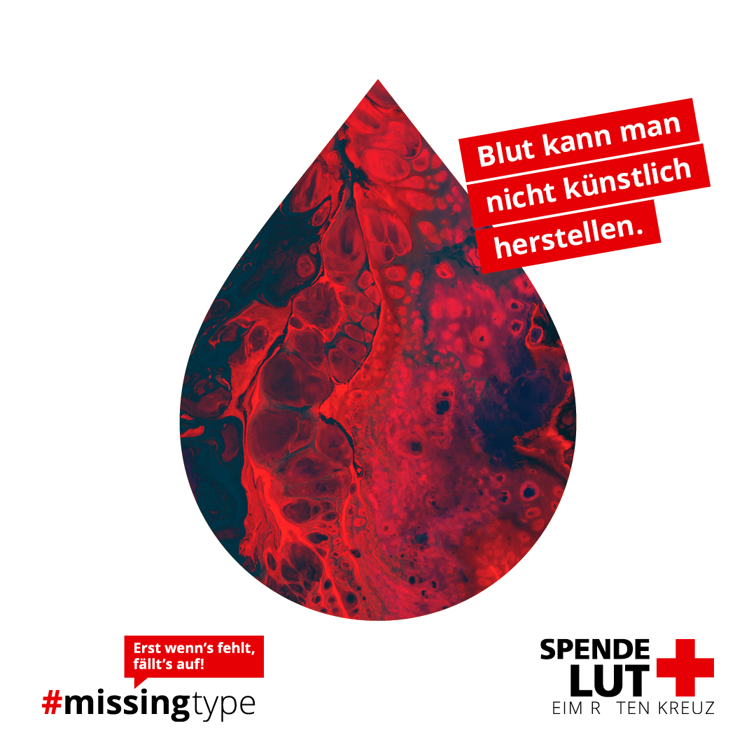 Mit dem gemeinsamen Ziel, rund um den Weltblutspendertag am 14. Juni 2020 auf das überlebenswichtige Thema Blutspende aufmerksam zu machen, haben die Blutspendedienste des Deutschen Roten Kreuzes (DRK) und des Bayerischen Roten Kreuzes (BRK) die aktuell laufende Kampagne #missingtype – erst wenns‘s fehlt, fällt‘s auf ins Leben gerufen. Mittels der fehlenden Buchstaben A, B und O, stellvertretend für die Blutgruppen A, AB, B und 0, machen nationale sowie internationale Partner auf die Folgen fehlender Blutspenden aufmerksam und setzen so ein gemeinsames, starkes Zeichen für die Blutspende.