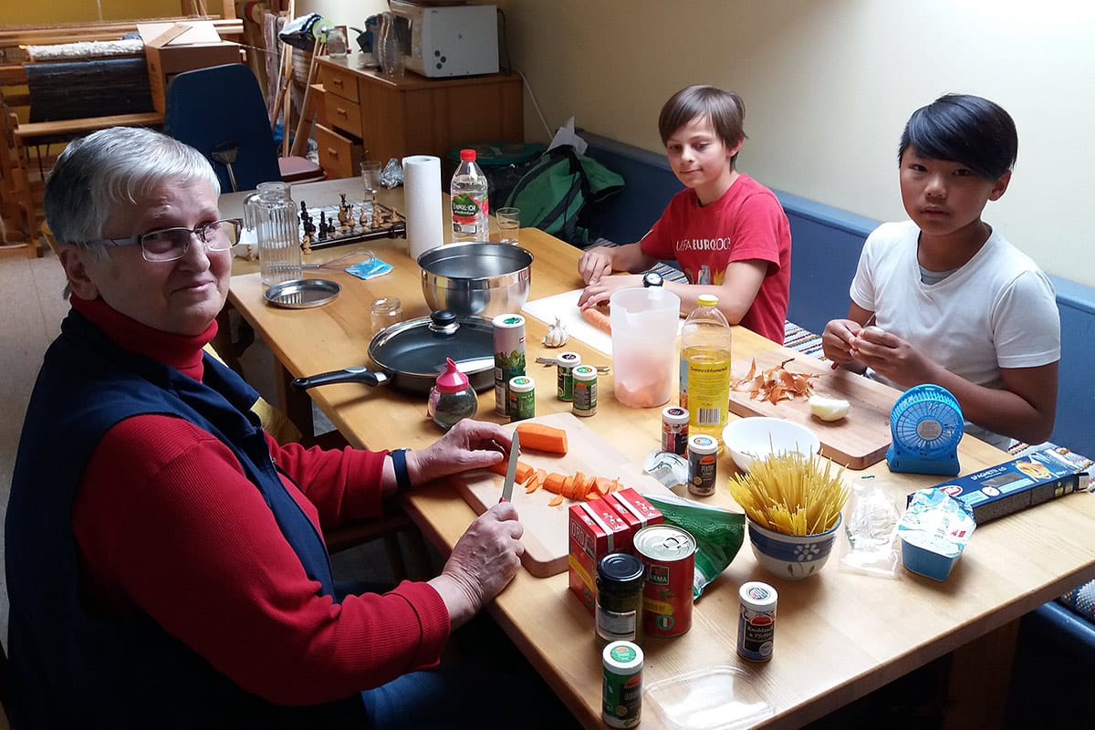 Mit Eifer beteiligten sich die Siebtklässler an den anstehenden Aufgaben. „Wir halfen beim Mittagessen kochen“, erzählten Benedikt und Namchai. Benedikt begleitete die Bewohner auf einem Spaziergang und lernte die Industriemontage der Förderstätte kennen in der er handwerkliche und kreative Fähigkeiten bewies. Gefragt waren die Jungs auch beim Tischtennis, Schach oder Billardspiel.