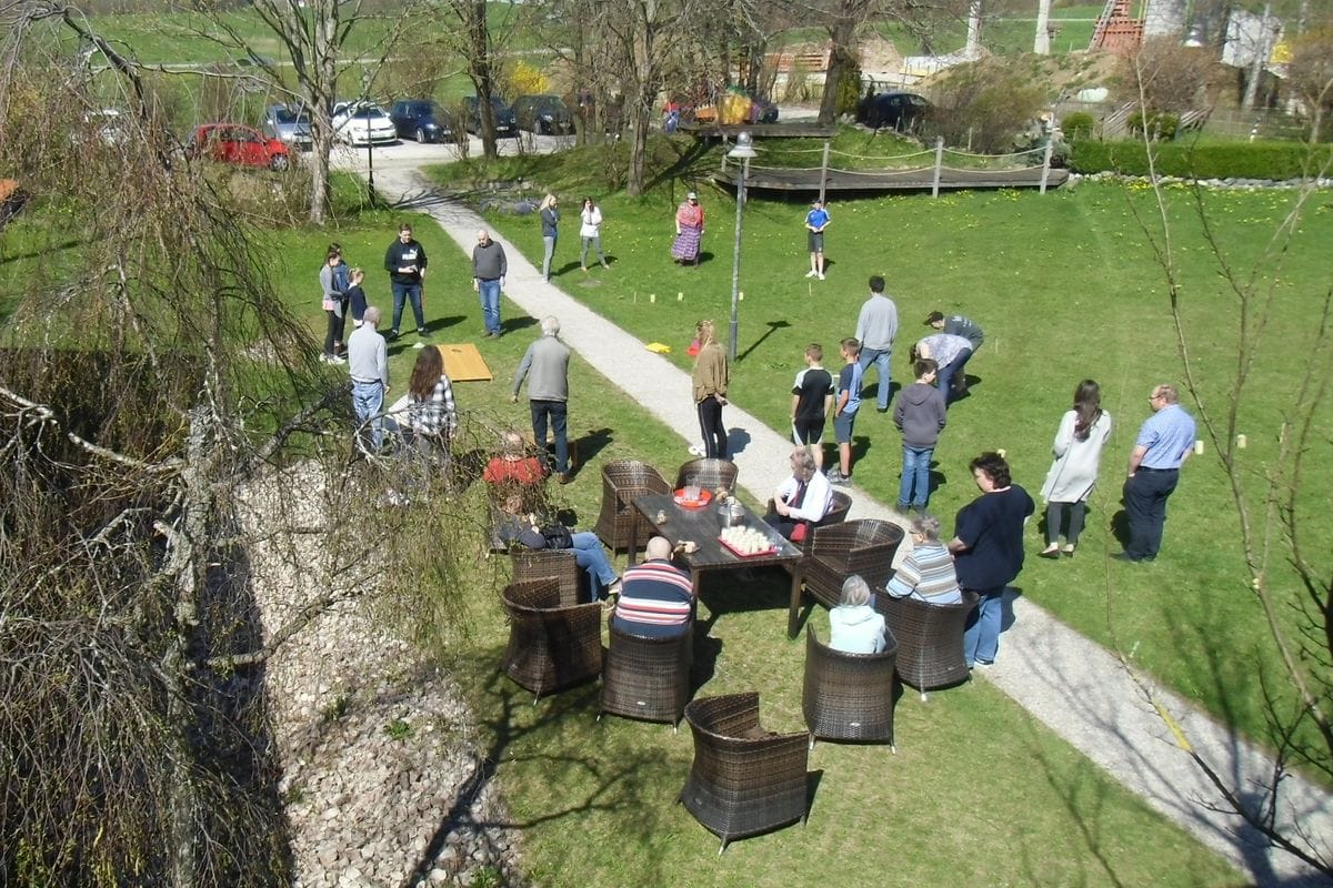Schließlich wurden die Firmlinge in die Arbeits- und Beschäftigungstherapie, Industriegruppe und den Wohnbereich C aufgeteilt. Dort begann der praktische Teil des Besuchs. Gemeinsam wurde dann im Garten mit den Bewohnern und Betreuern Cornhole und das Wikinger-Schach gespielt und selbst zubereitete Bananenmilch getrunken. Hierbei hatten alle viel Spaß und Berührungsängste wurden hör- und sichtbar abgebaut. Abschließend kamen die Firmlinge zu dem Fazit „Menschen mit psychischen Behinderungen sind ja eigentlich ganz normal !“
